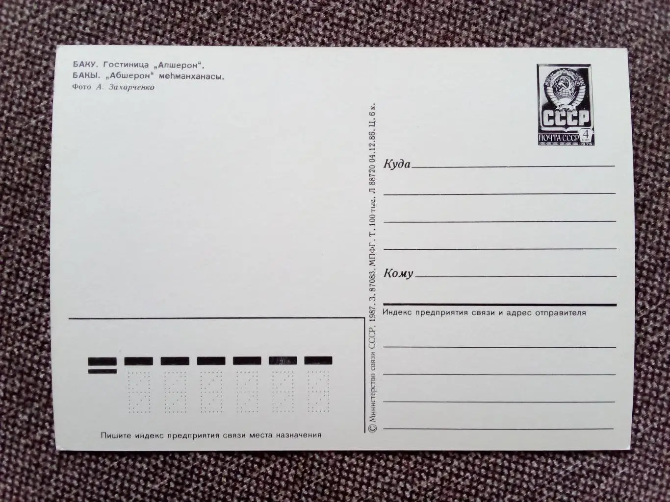 Отправка купленного лота , осуществляется заказным письмом , в соответствующей упаковке. Стоимость отправки отправления указывается согласно существующим тарифам " Почты России ". Все покупки отправляются одним почтовым отправлением. Оригинал. Издательство : " Министерства связи СССР " , 1987 г.
