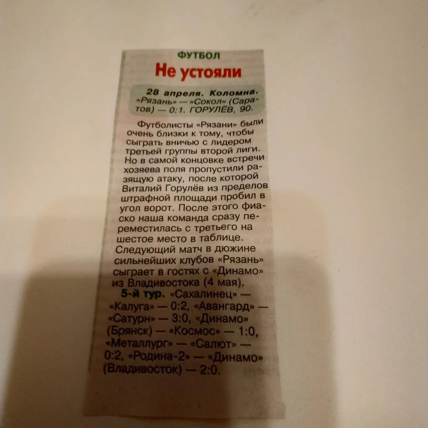 Вирізка з газети. Кубок СРСР. Фінали.м.