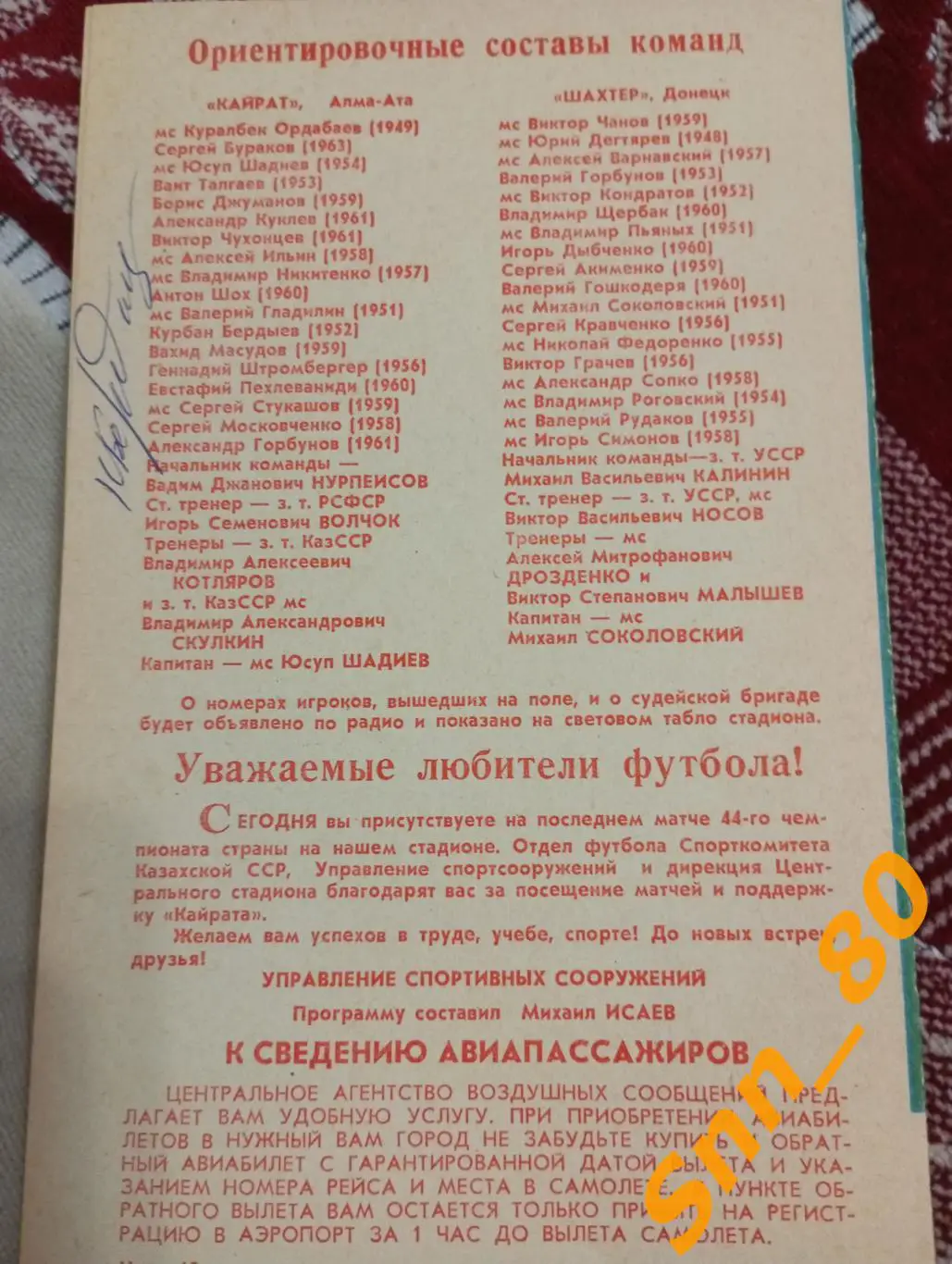 Кайрат Алма-Ата - Шахтер Донецк 1981 + Автограф К.Б.Бердыев