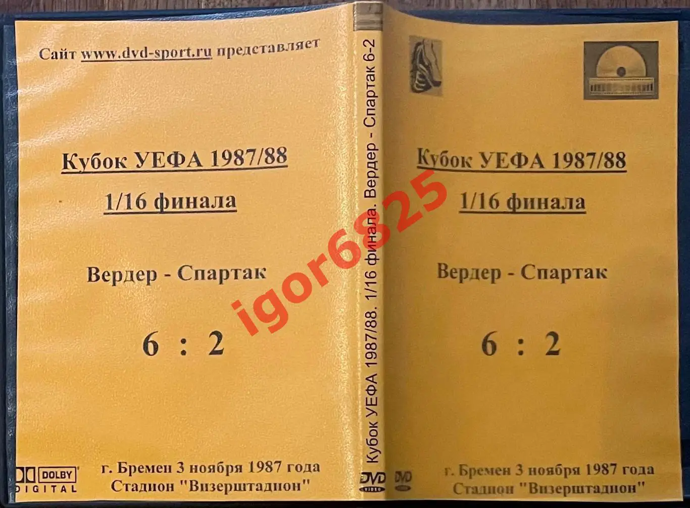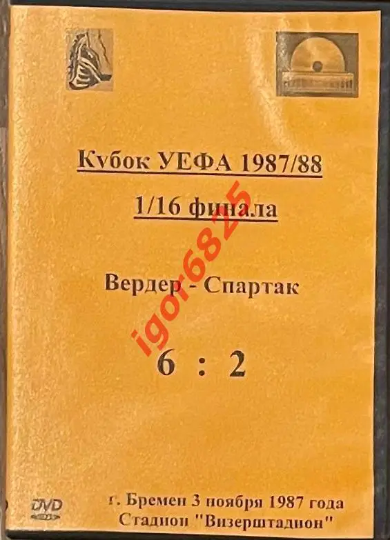 Футбол. DVD диск 1/16 Кубка УЕФА Вердер ФРГ – Спартак Москва. 3 ноября 1987 годаФутбол. DVD диск 1/16 Кубка УЕФА Вердер ФРГ – Спартак Москва. 3 ноября 1987 года 1Футбол. DVD диск 1/16 Кубка УЕФА Вердер ФРГ – Спартак Москва. 3 ноября 1987 года 2Футбол. DVD диск 1/16 Кубка УЕФА Вердер ФРГ – Спартак Москва. 3 ноября 1987 года 3