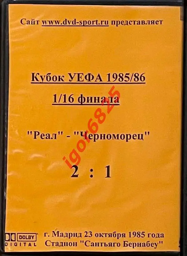 Футбол. DVD диск 1/16 Кубка УЕФА Реал Мадрид – Черноморец Одесса. 23.10 1985 г.Футбол. DVD диск 1/16 Кубка УЕФА Реал Мадрид – Черноморец Одесса. 23.10 1985 г. 1Футбол. DVD диск 1/16 Кубка УЕФА Реал Мадрид – Черноморец Одесса. 23.10 1985 г. 2Футбол. DVD диск 1/16 Кубка УЕФА Реал Мадрид – Черноморец Одесса. 23.10 1985 г. 3