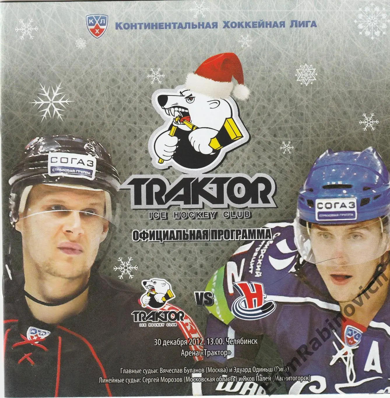 Программа КХЛ 2012/2013 к матчу Трактор (Челябинск) - Сибирь (Новосибирск) 30.12.2012. Состояние на фото. По запросу могу выслать дополнительные фото.