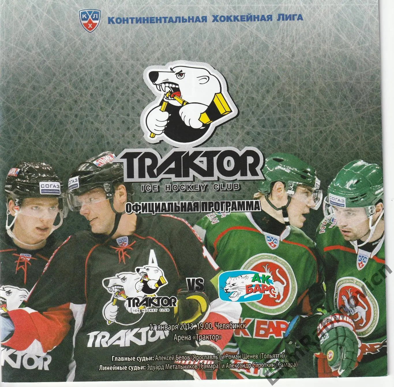 Программа КХЛ 2012/2013 к матчу Трактор (Челябинск) - Ак Барс (Казань) 17.01.2013. Состояние на фото. По запросу могу выслать дополнительные фото.