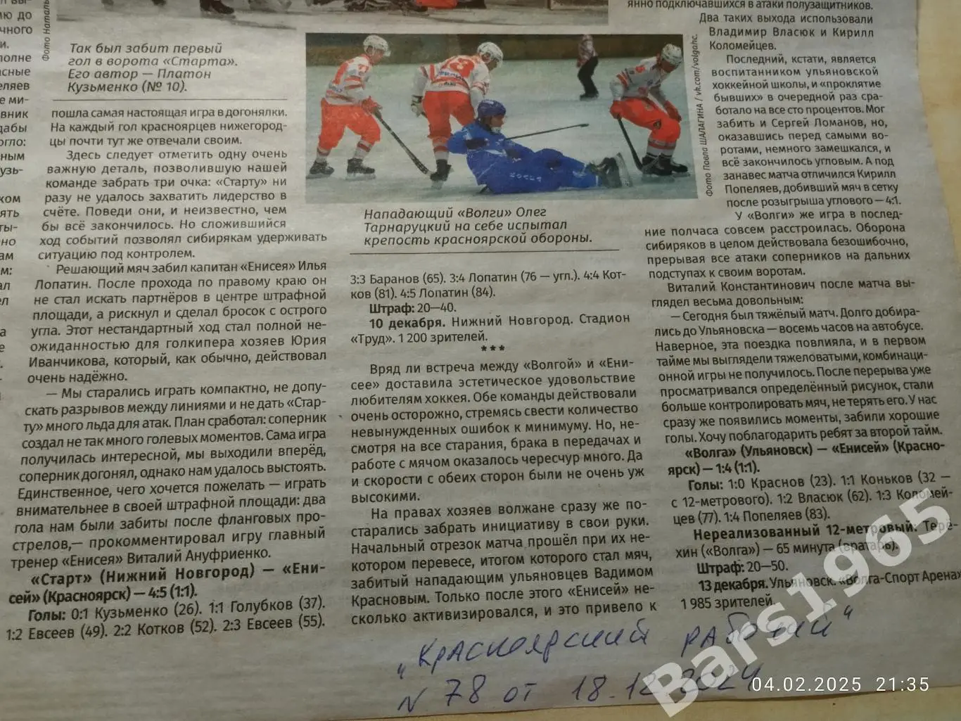 Отчет из газеты "Красноярский рабочий" от 18.12.2024 № 78 Хоккей с мячом