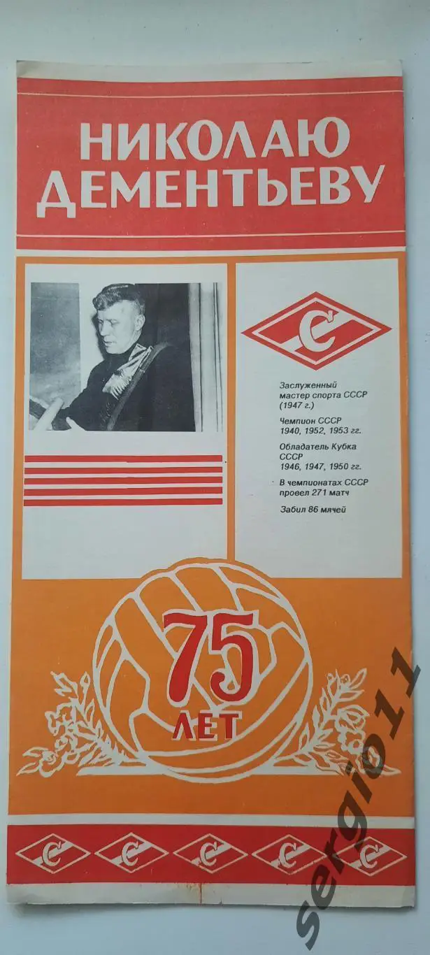 Николаю Деменьеву 75 лет. Спартак Москва. 1990 г.