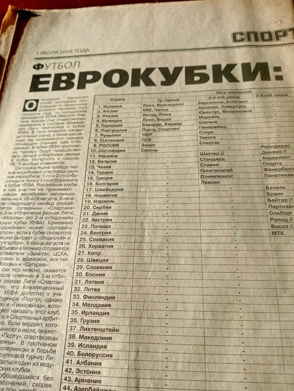 Еврокубки. Сезон-2008/2009. СЭ(1 июля 2008)