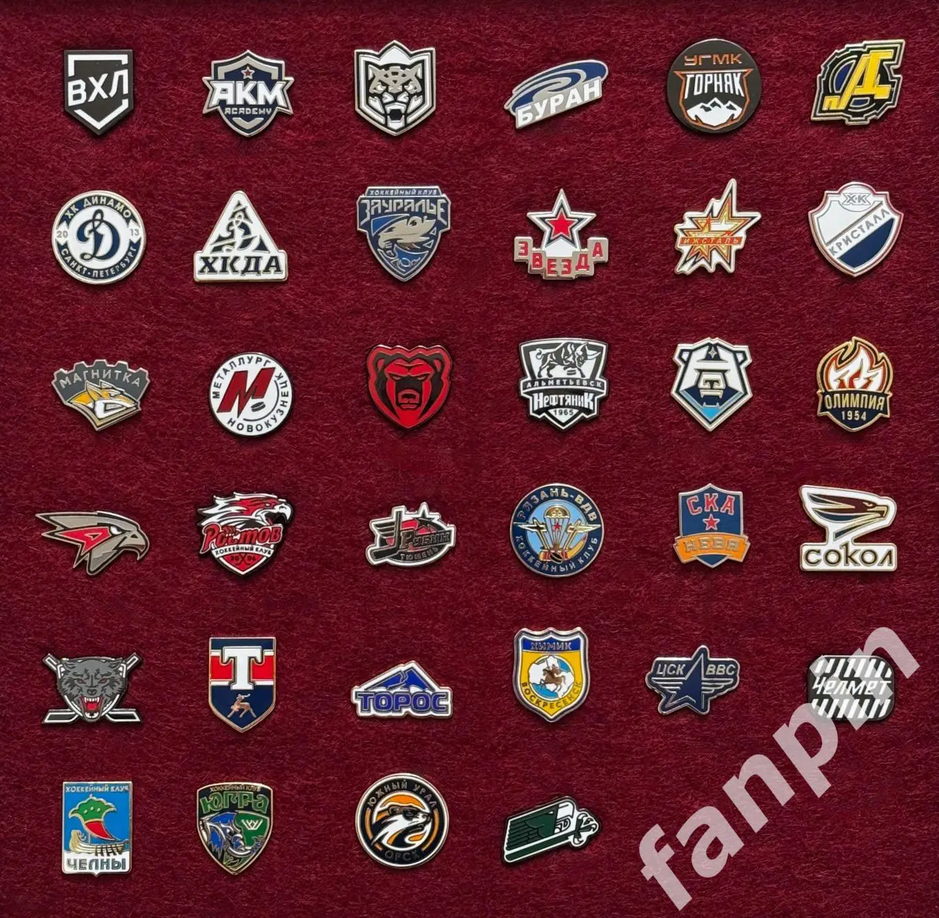 Набор значков Эмблемы клубов ВХЛ сезона 2024-2025 из 34 значков