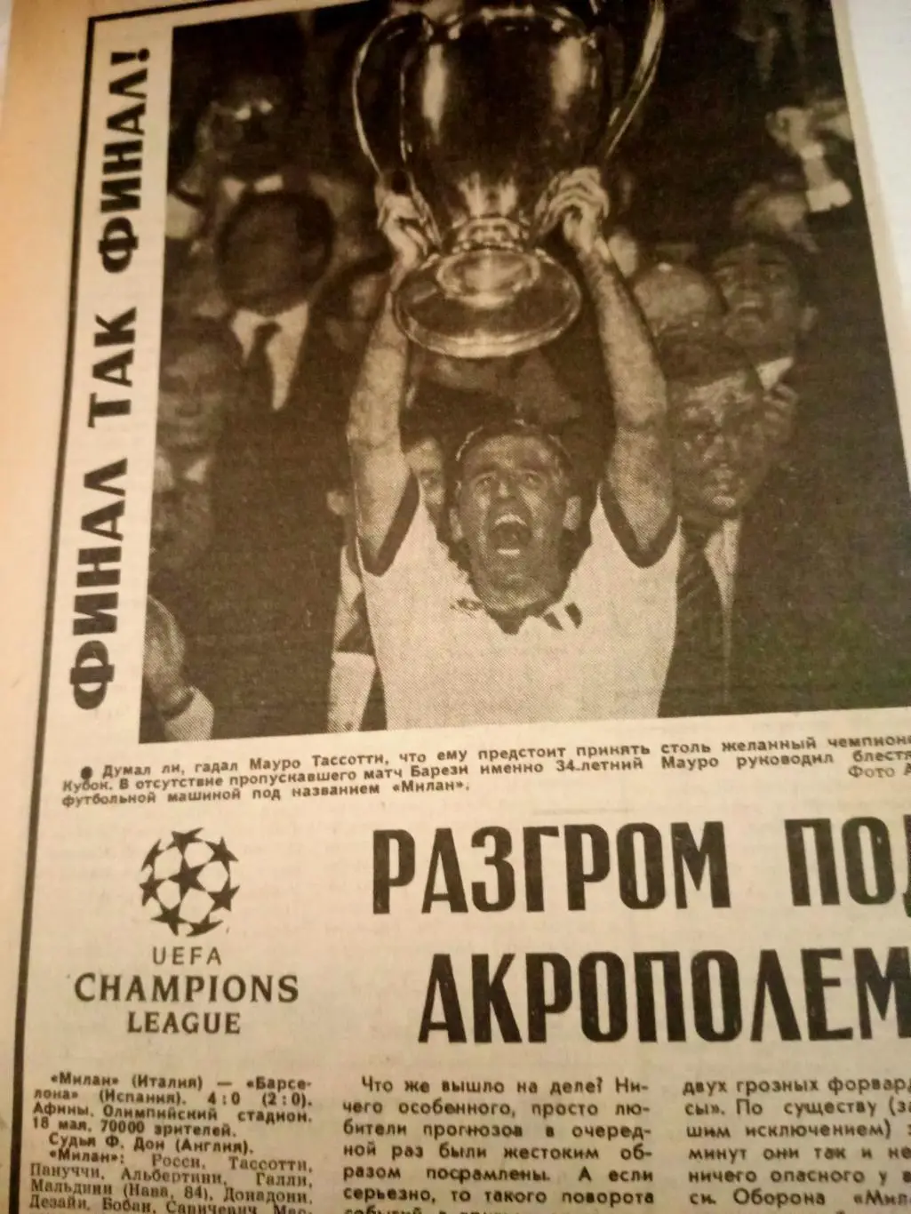 Финал. Лига чемпионов-94. Милан - Барселона - 4:0. Советский спорт. 20.05 1994
