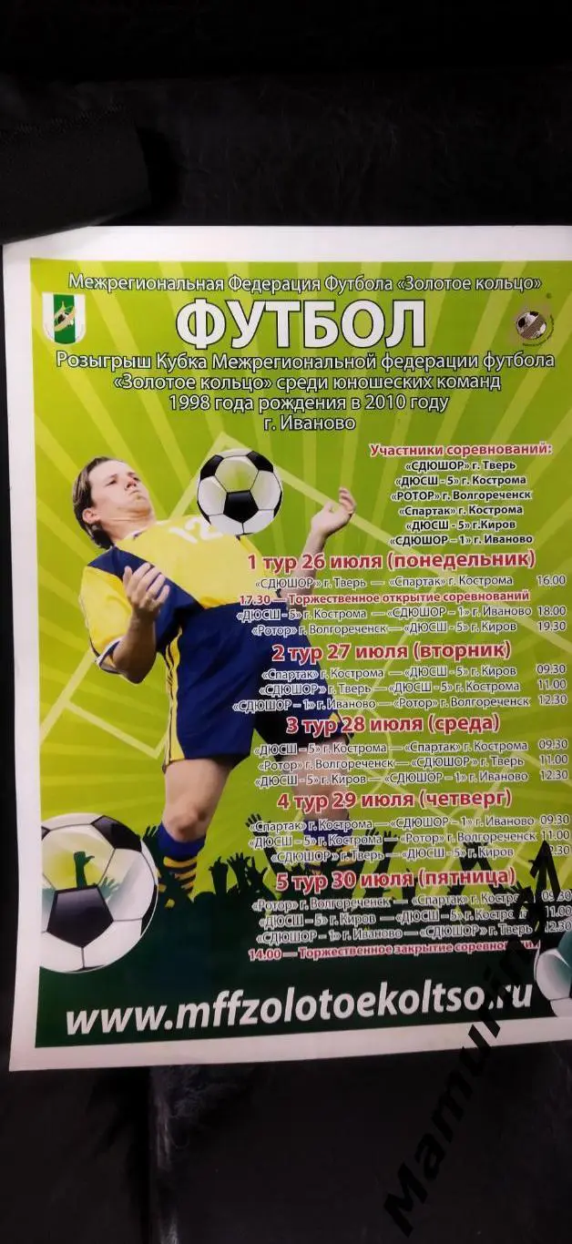 Афиша Кубок Золотое кольцо среди юношей 1998 г.р. Иваново 2010 год.  Участники Иваново, Тверь, Кострома, Волгореченск, Киров.