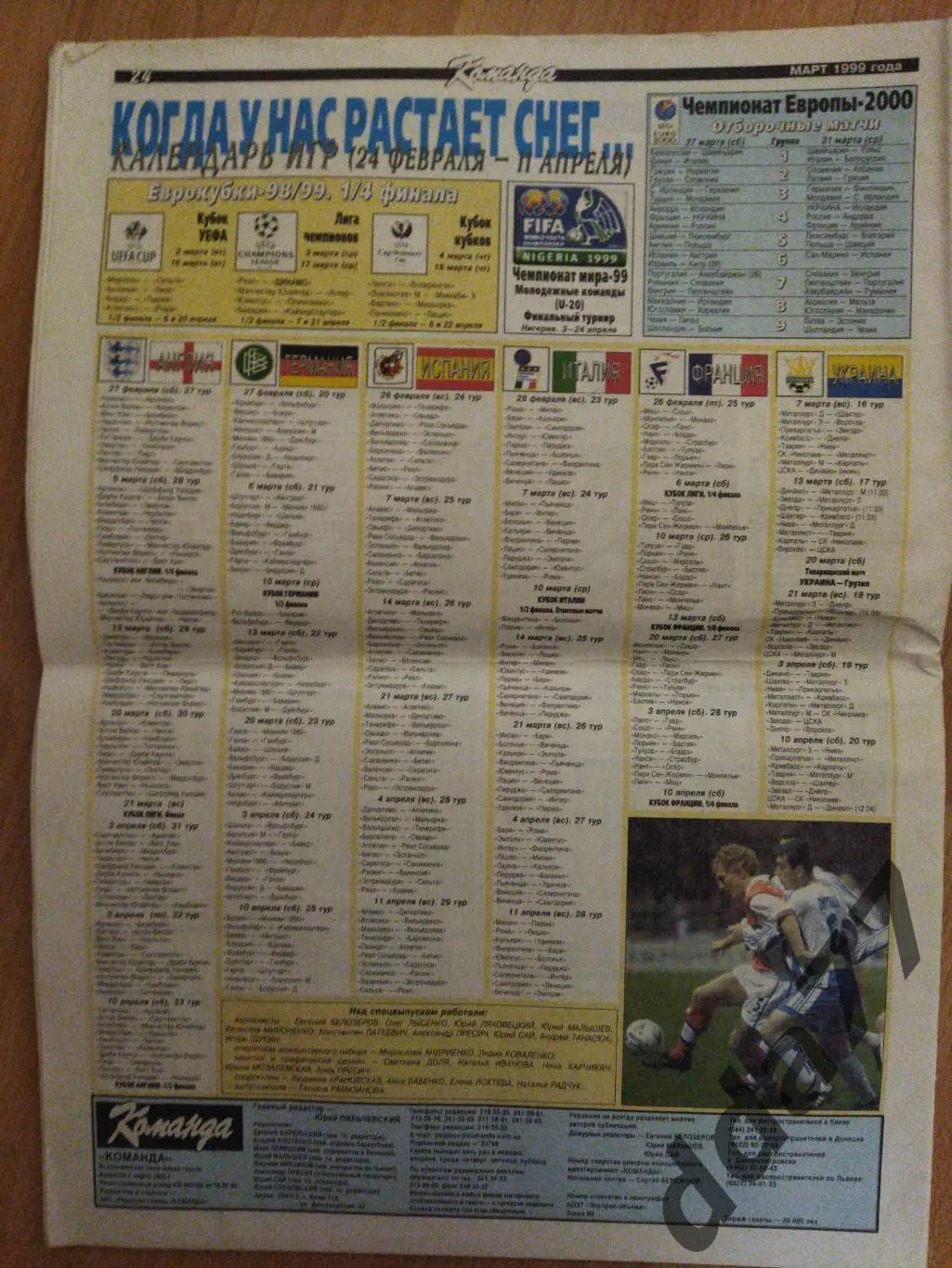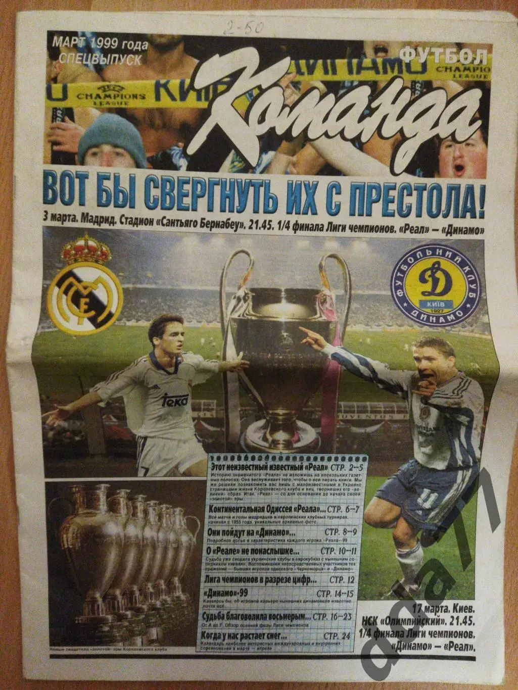 (4492) газета Команда,март 1999 к ЛЧ Реал Мадрид Испания Динамо Киев Украина