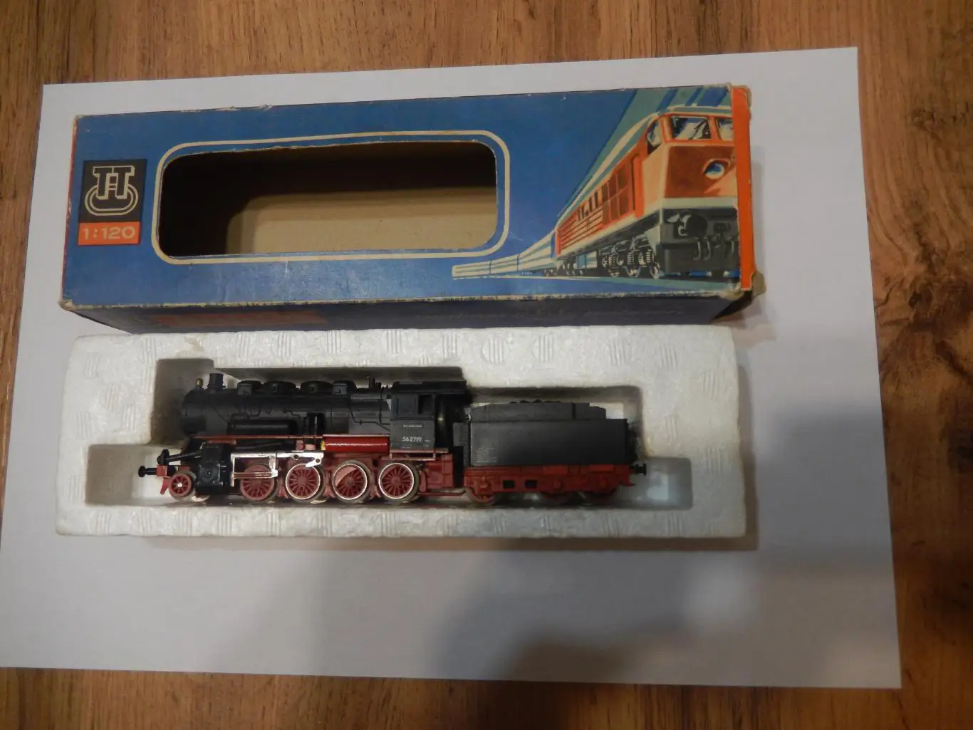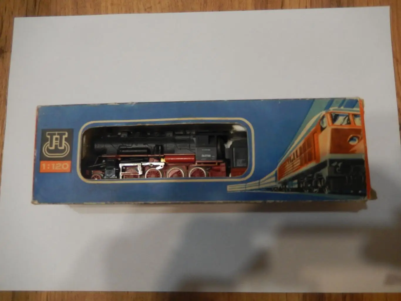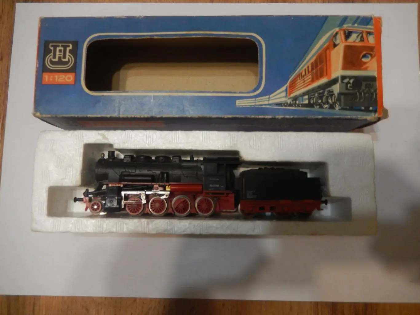 На паровозе отсутствует часть дышла, потому и цена низкая. В родной коробке, в остальном без нареканий.