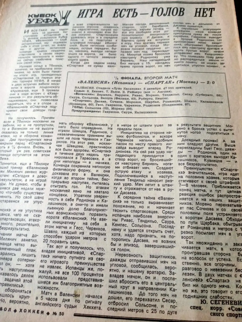 Валенсия-Спартак. Озерову-60лет. Год сборной. Футбол-Хоккей