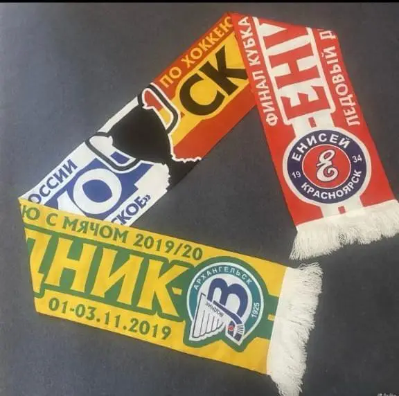 Шарф посвященный кубку России между командами Ска, Водник, Енисей, Динамо сезона 2019-2020