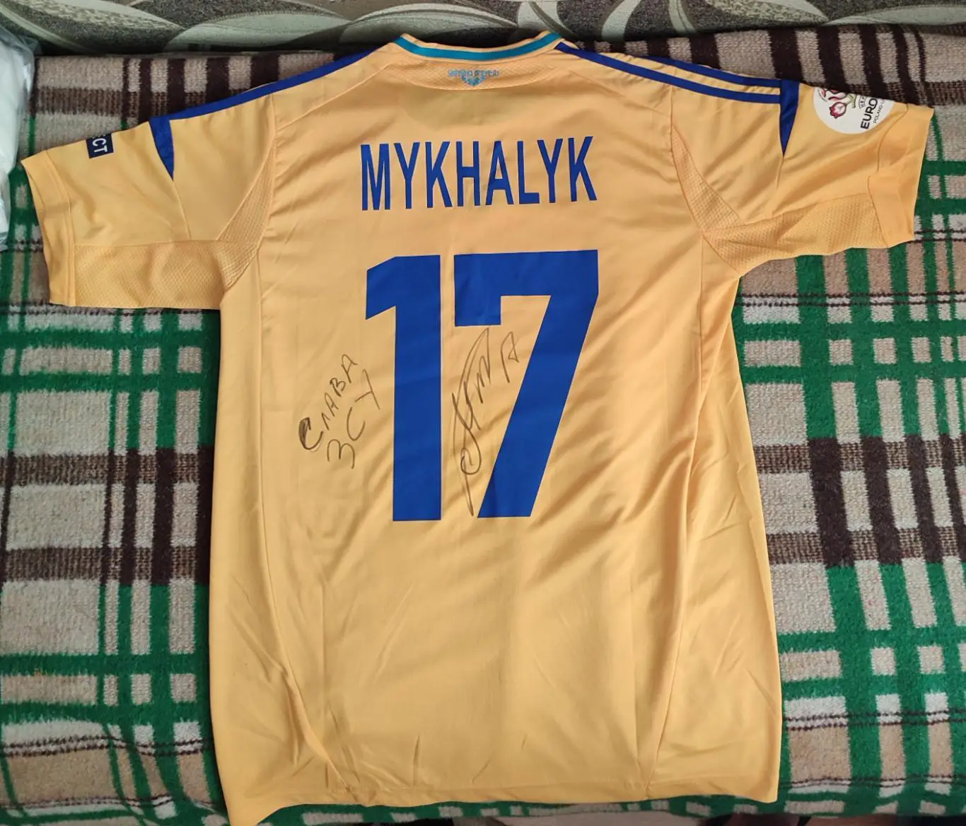 Оригинальная матчевая футболка сб.Украины, Тарас Михалик, Англия-Украина, автогр