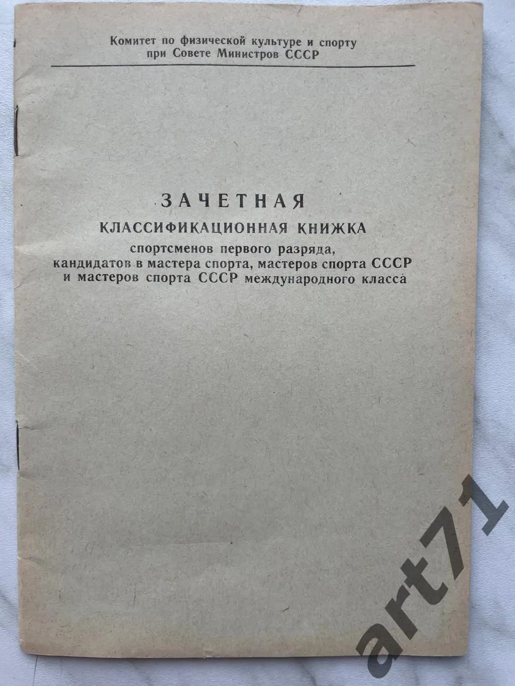 Зачетная классификационная книжка спортсменов. СССР. 1986