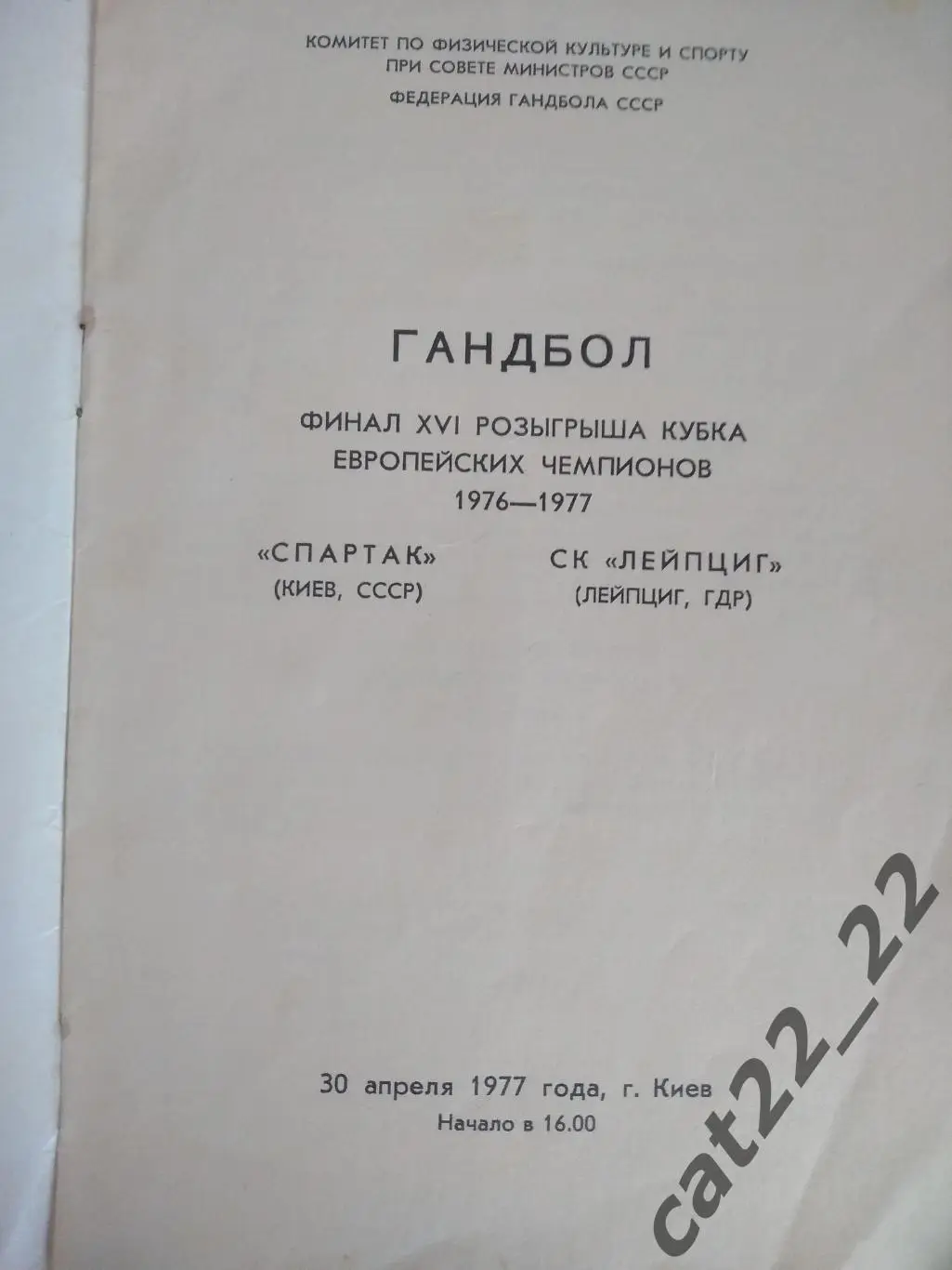Гандбол. Спартак Киев СССР/Украина - СК Лейпциг Лейпциг ГДР/Германия 1977