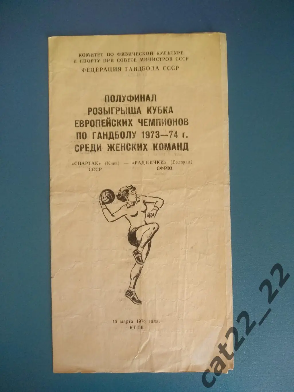 Гандбол. Спартак Киев СССР/Украина - Раднички Белград СФРЮ/Сербия 1974