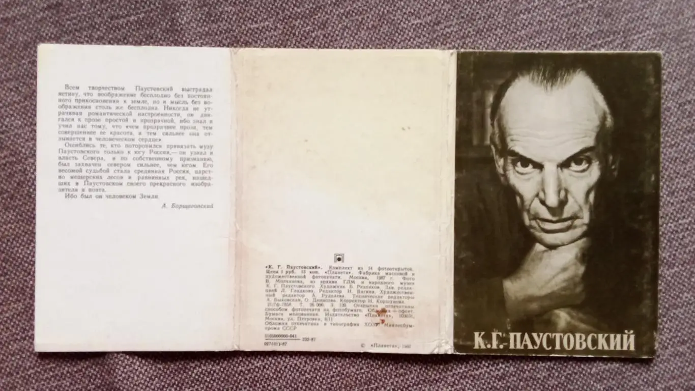 Писатель К.Г. Паустовский (1892 - 1968 гг.) 1987 г. полный набор - 14 открыток