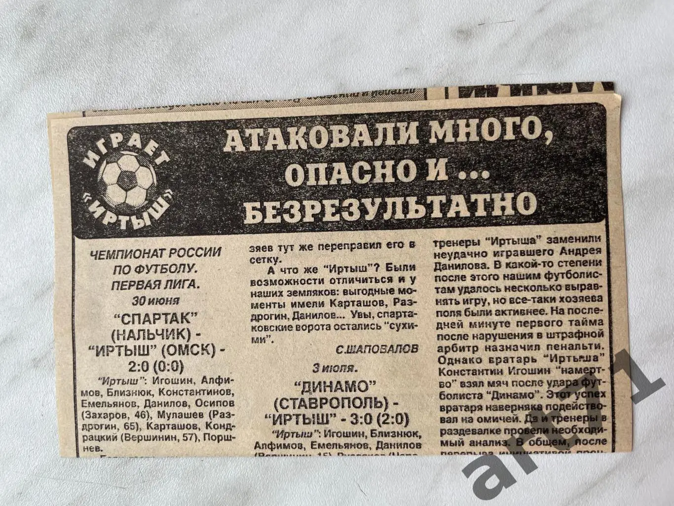 Спартак Нальчик - Иртыш Омск; Динамо Ставрополь - Иртыш Омск 1997