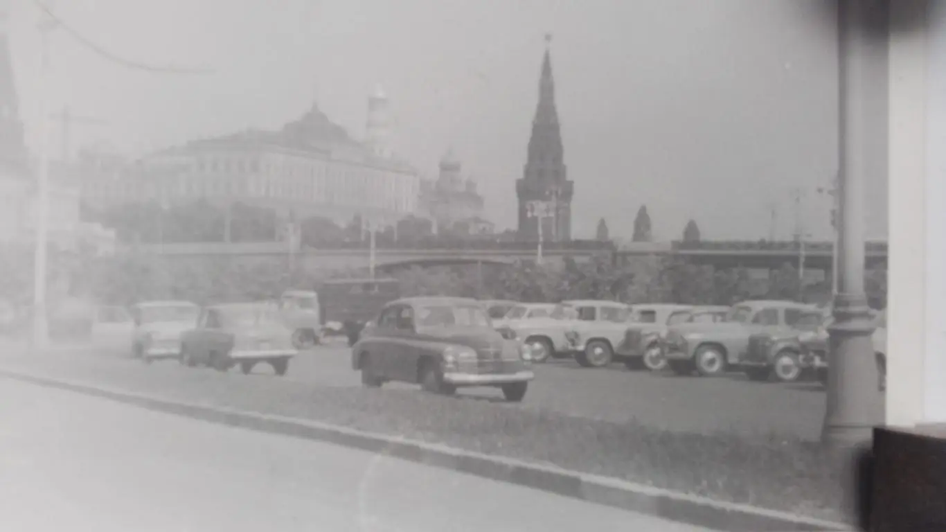 Фото. Москва. На стоянке у Кремля элитные для тех лет автомобили - ГАЗ-М-20 Победа, Москвичи-400 и другие. Примерно середина 1950-х годов.