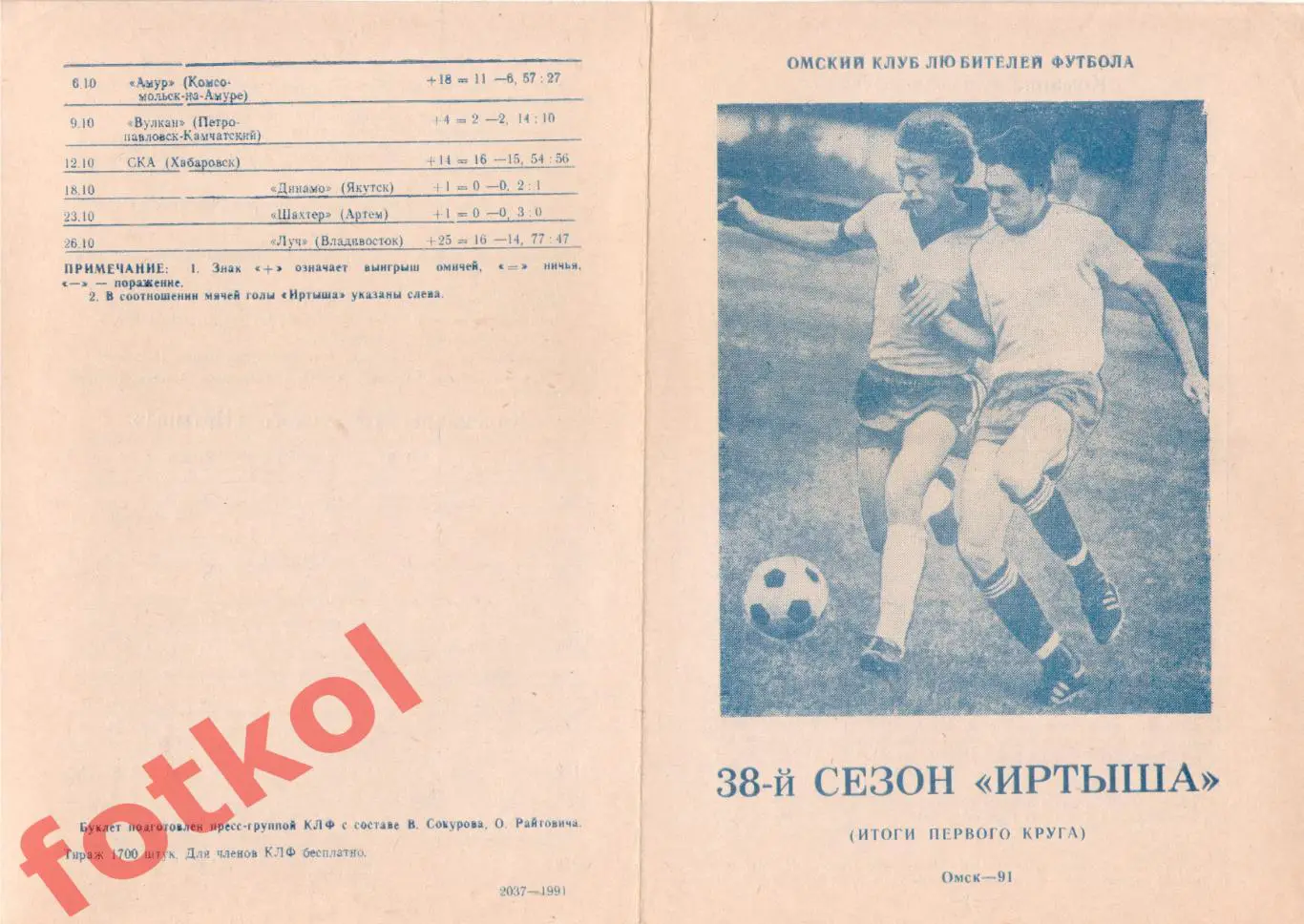 ИРТЫШ Омск 1991 38 сезон КЛФ Итоги 1 круга