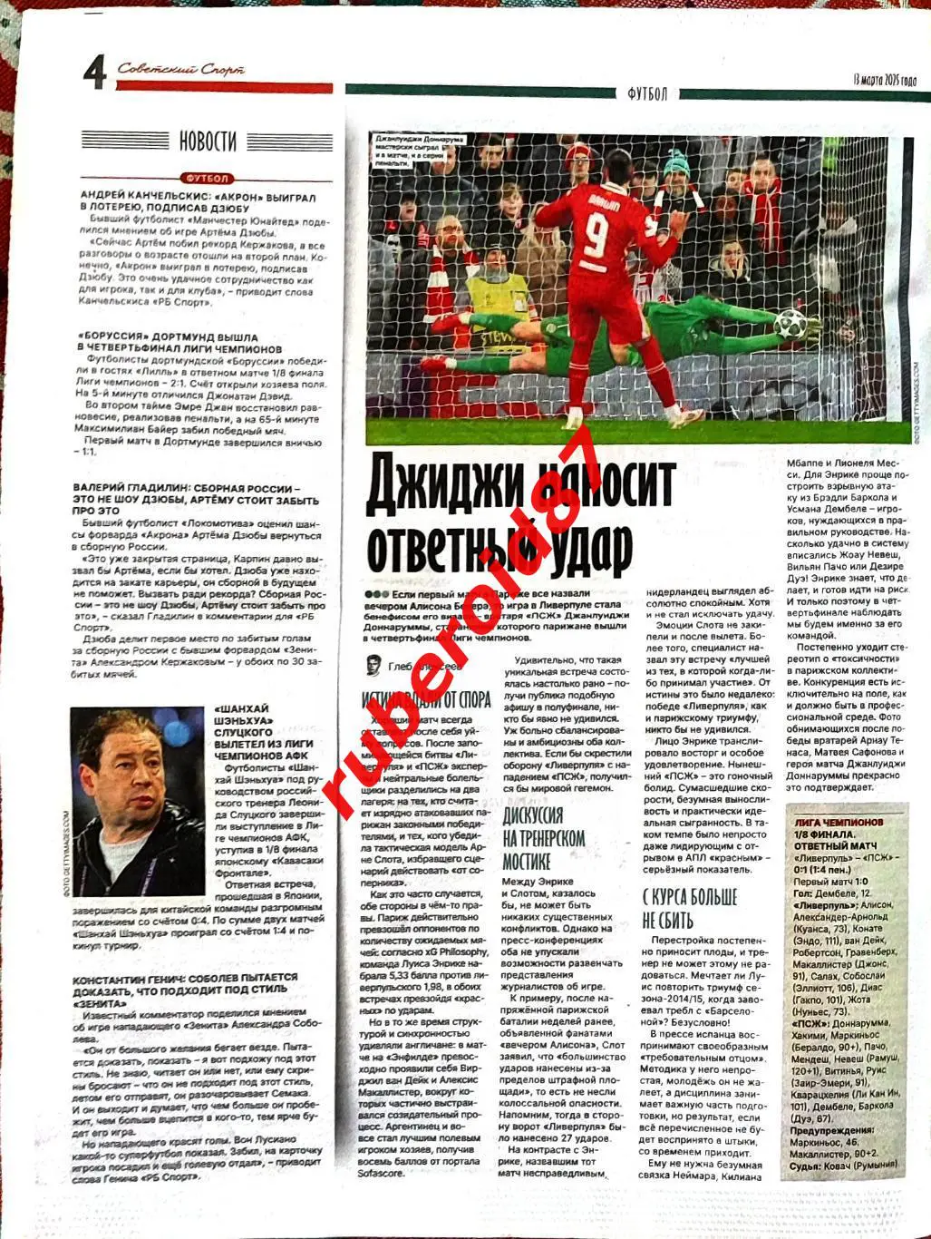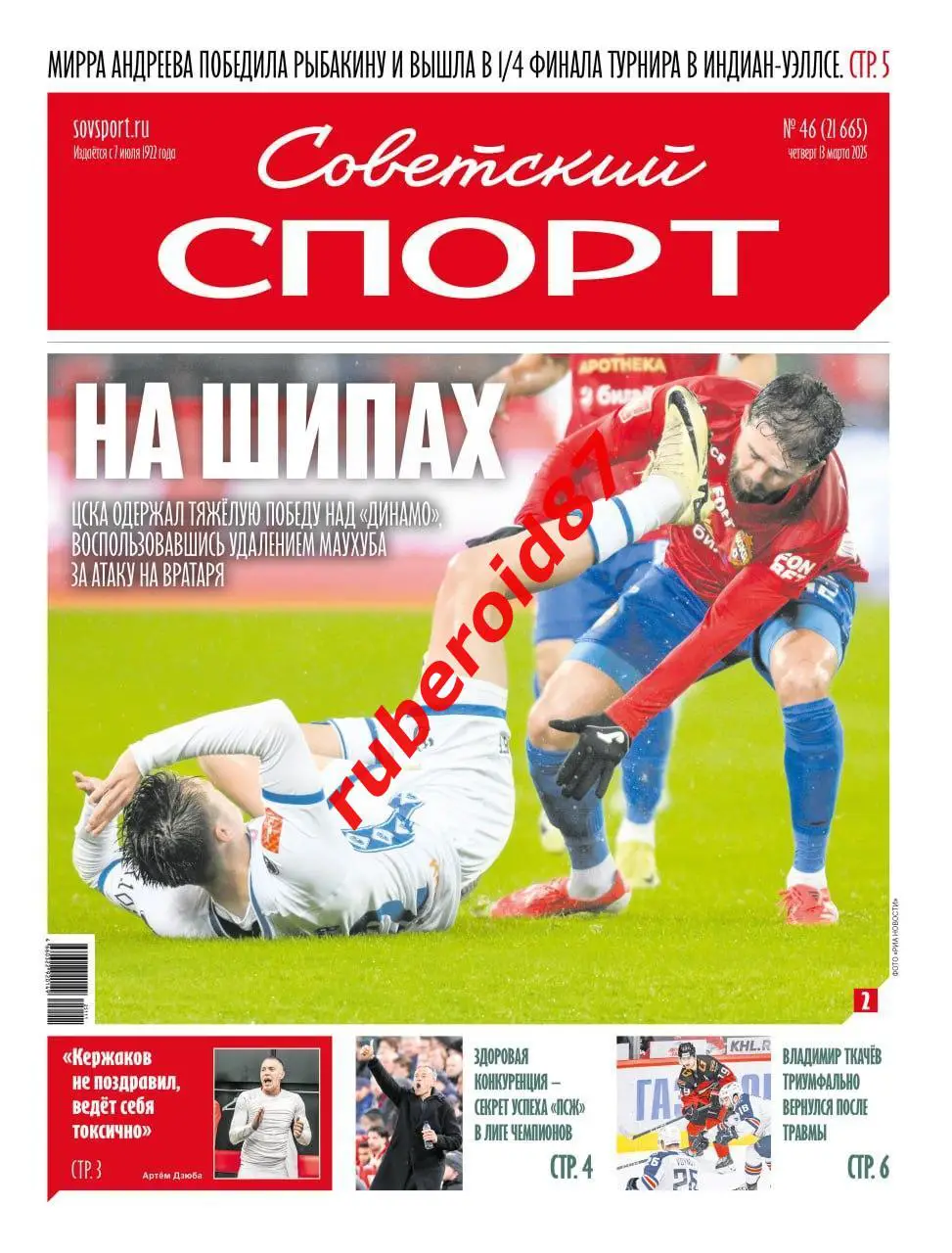 Советский спорт 13.03.2025 Кубок ЦСКА-Динамо Ростов-Зенит/Ливерпуль-ПСЖ/Овечкин