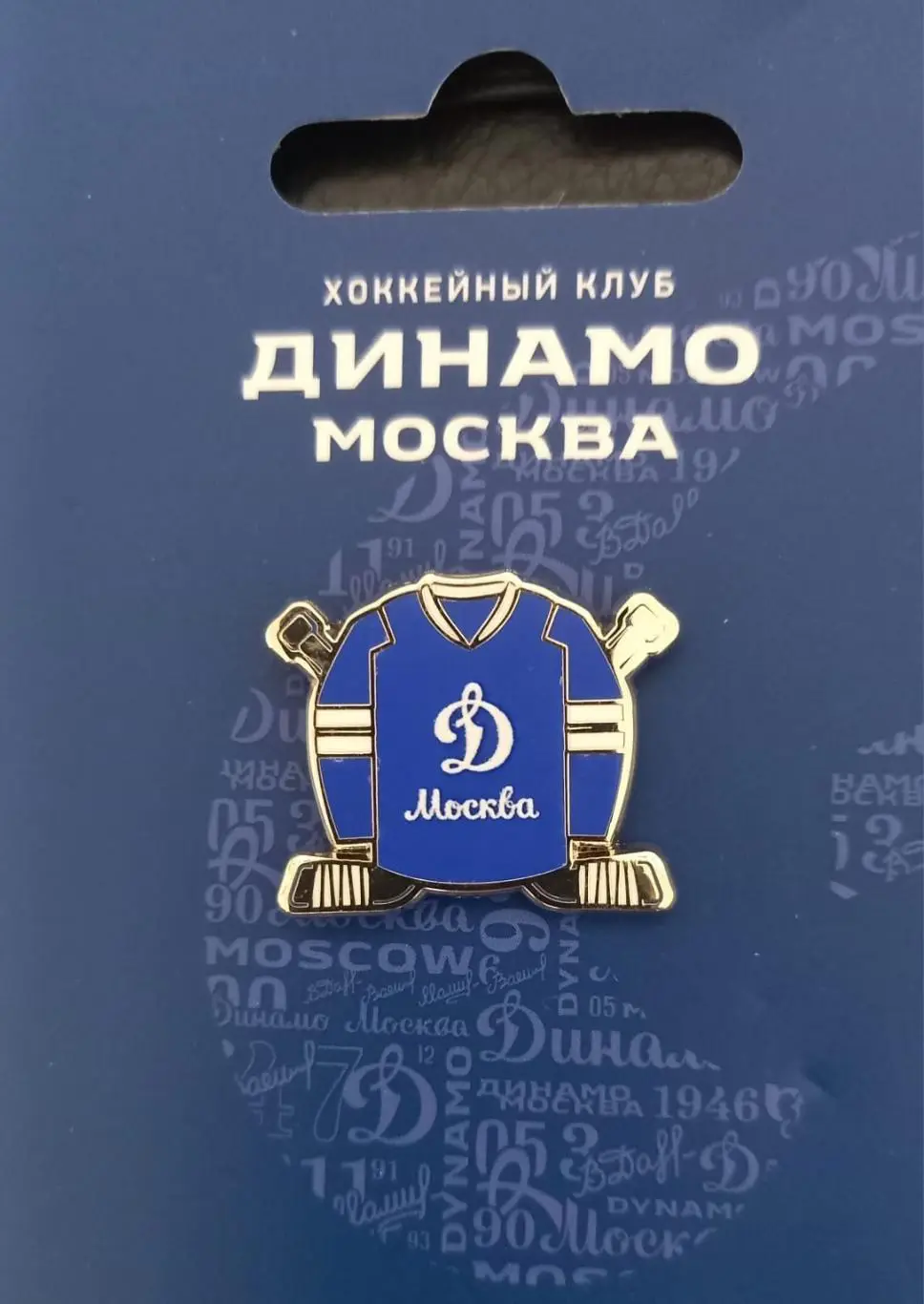 Значок ХК Динамо Москва. Джерси с клюшками. Выпуск 2024 года. Официальная продукция клуба.