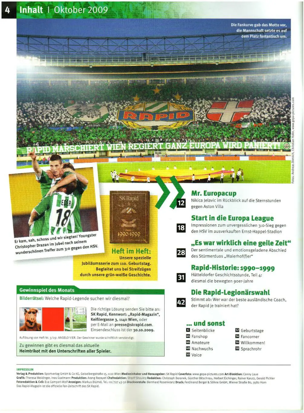 RAPID Magazin 2009 №4 /Лига Европы Рапид–Гамбург–3:0 История 1990–1999 З.Кранчар