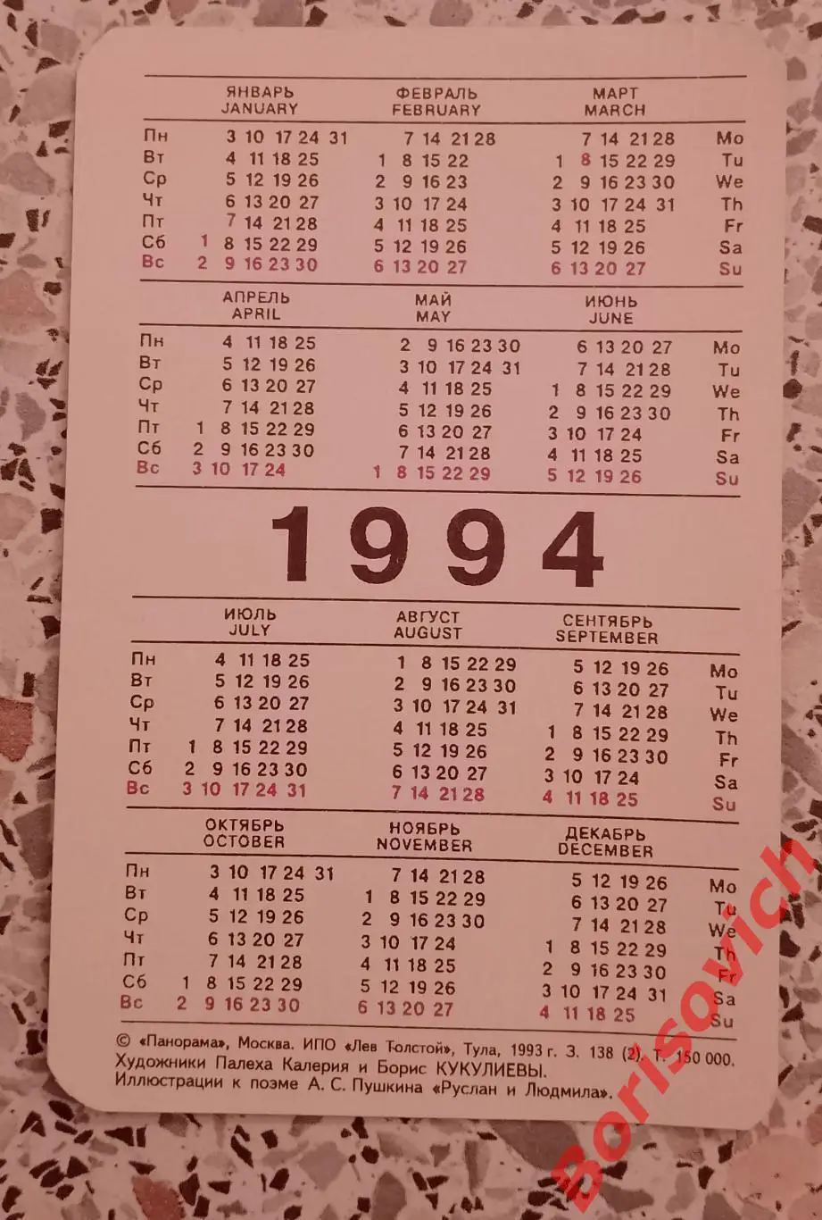 Календарик Иллюстрация к поэме А. С. Пушкина РУСЛАН И ЛЮДМИЛА 1994Календарик Иллюстрация к поэме А. С. Пушкина РУСЛАН И ЛЮДМИЛА 1994 1