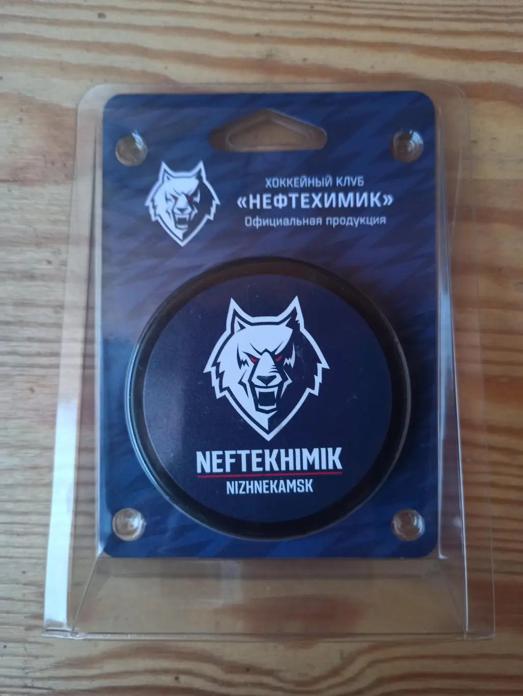 Официальная хоккейная шайба с логотипом ХК "Нефтехимик". Состояние: новая, в упаковке.