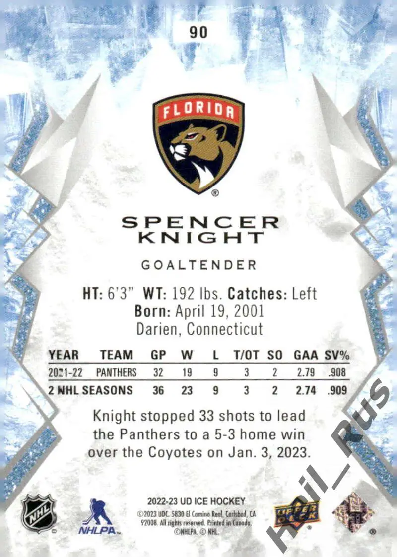 Хоккей Карточка Spencer Knight/Спенсер Найт (Florida Panthers/Флорида) НХЛ/NHL