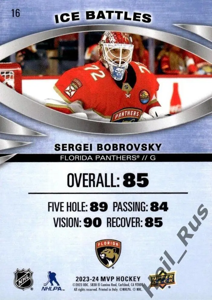 - 16 Sergei Bobrovsky (Ice Battles)