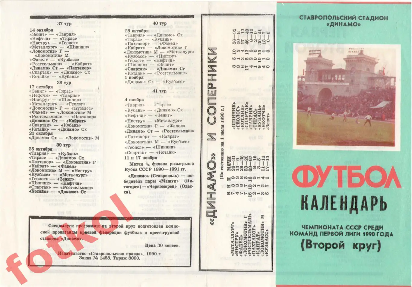 ДИНАМО Ставрополь 1990 Календарь 2 круг