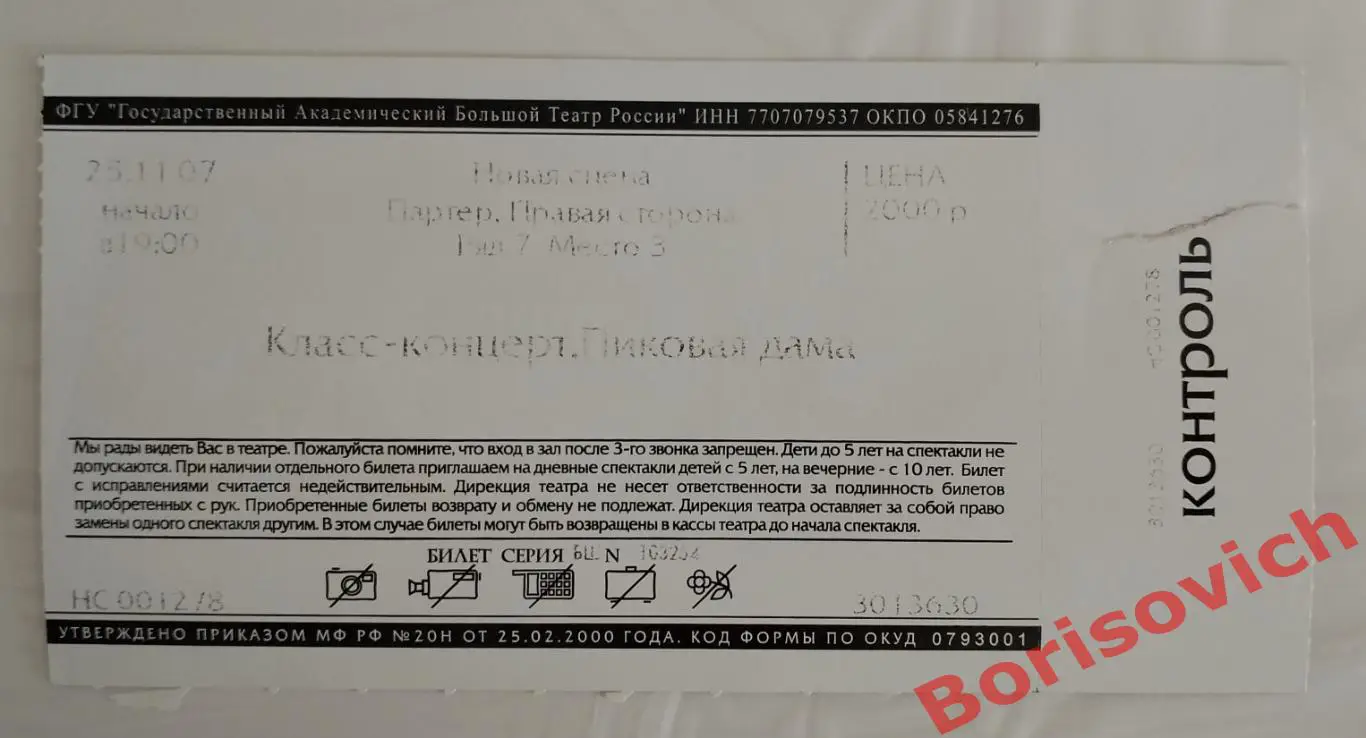 Билет Большой театр КЛАСС - КОНЦЕРТ / ПИКОВАЯ ДАМА 2007Билет Большой театр КЛАСС - КОНЦЕРТ / ПИКОВАЯ ДАМА 2007 1
