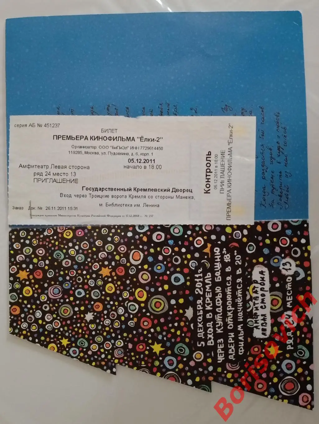 Билет Примьера кинофильма Елки 2 Государственный Кремлёвский дворец 2011Билет Примьера кинофильма Елки 2 Государственный Кремлёвский дворец 2011 1