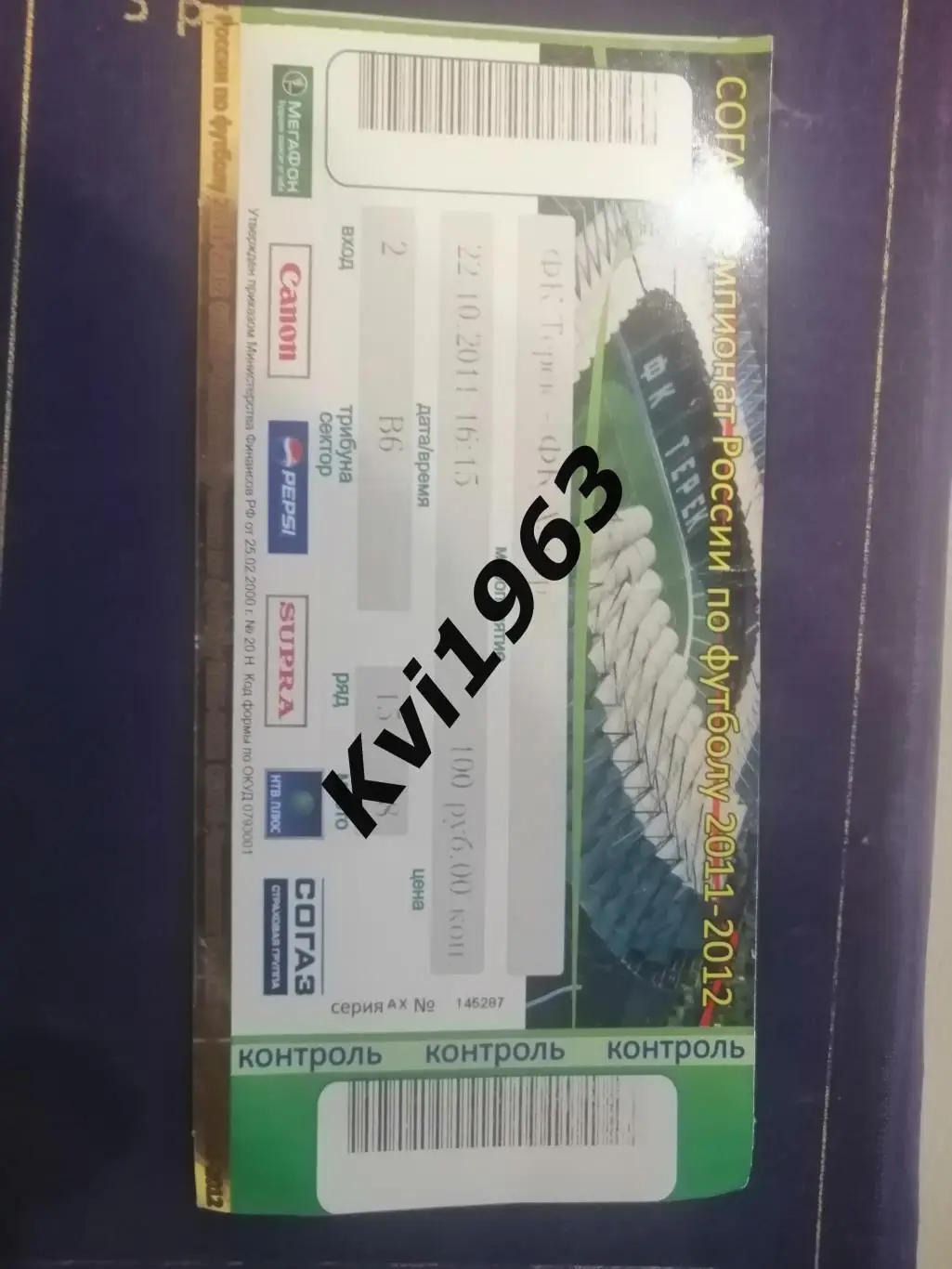 Билет Терек. Грозный ФК Амкар Пермь 22.10.2011 чемпионат России