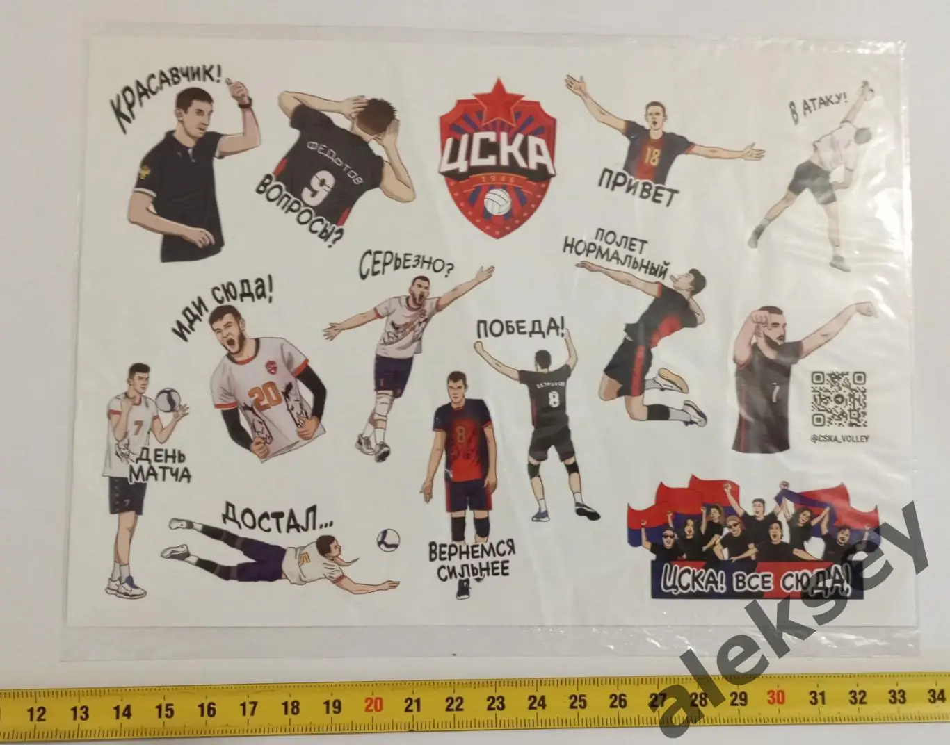 Набор стикеров №1. Волейбольный клуб ЦСКА. Состояние - см. фото.