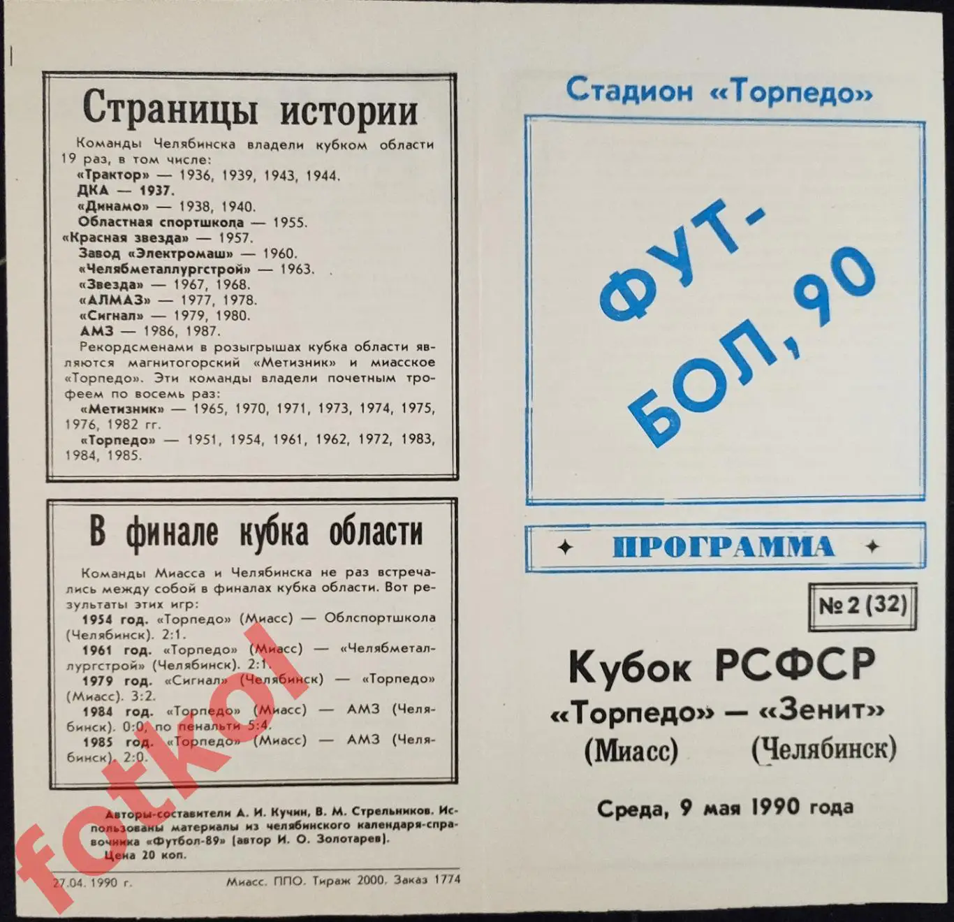 ТОРПЕДО Миасс - ЗЕНИТ Челябинск 09.05.1990 КУБОК РСФСР