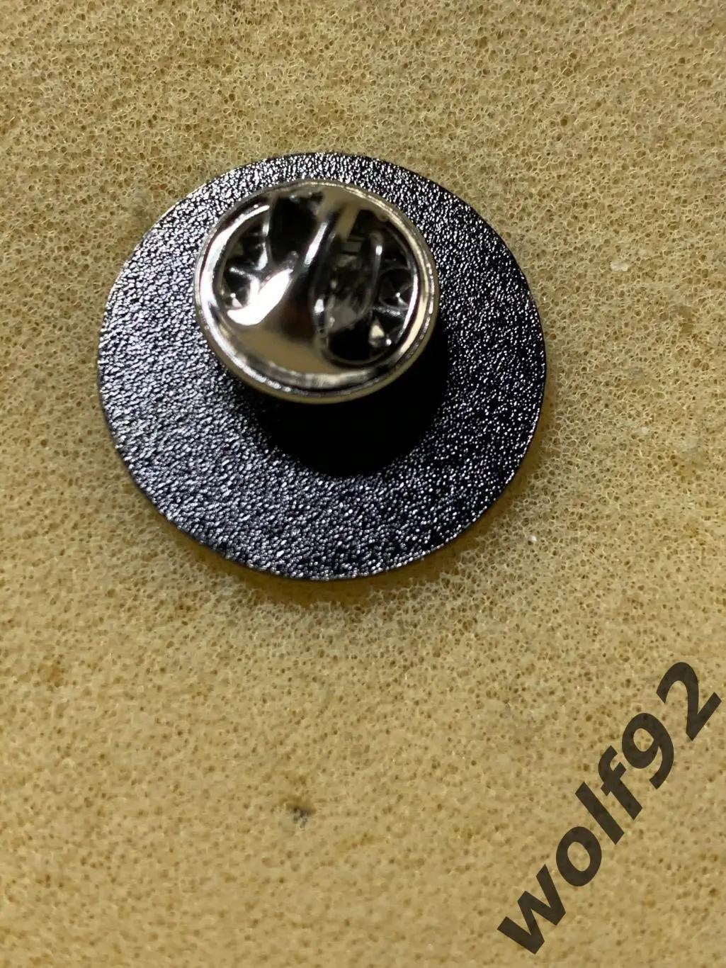 Тяж. металл (цвет металла - "никель"), синтетическая (твёрдая) эмаль (эпола), размер D=22 мм, тип крепления - цанга, состояние - хор. - см. скан.