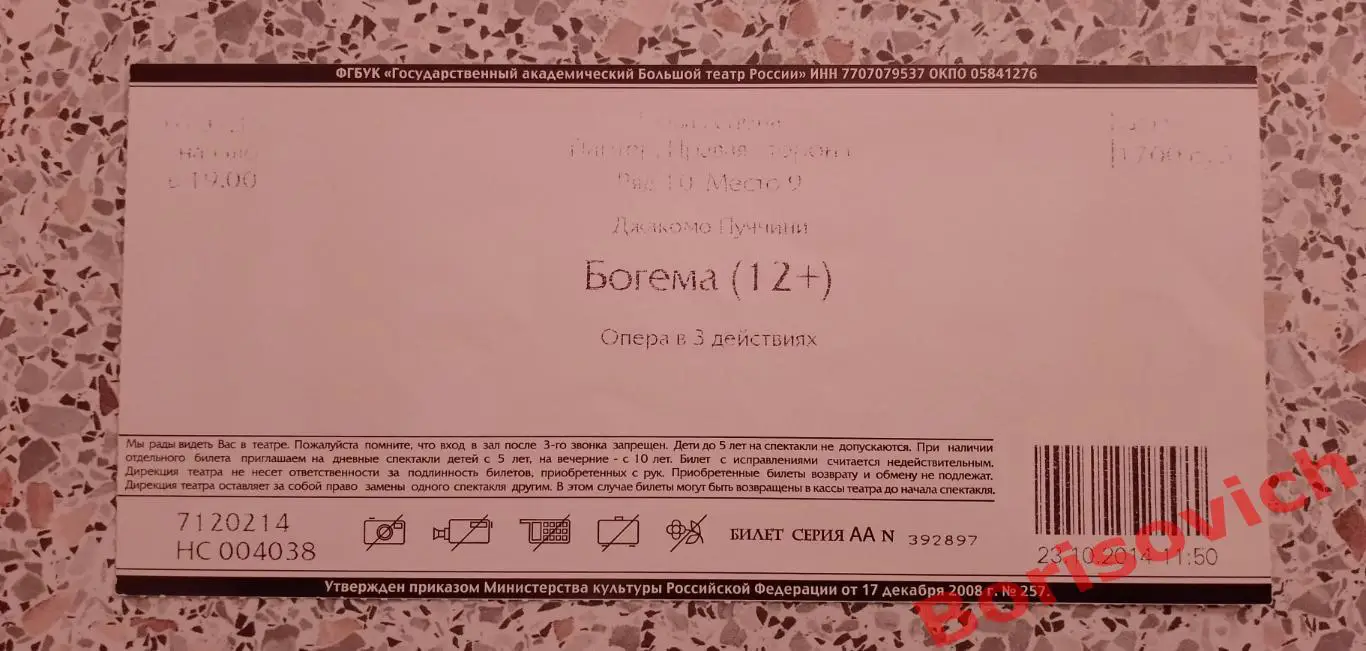 Билет Большой театр Дж. Пуччини БОГЕМА 2015Билет Большой театр Дж. Пуччини БОГЕМА 2015 1