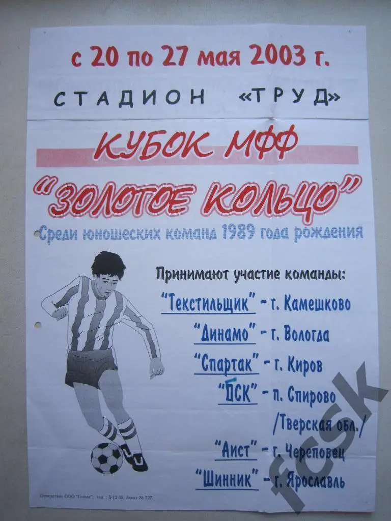 Афиша Камешково 2003. Спирово, Череповец, Ярославль, Киров, Вологда. Юноши 1989