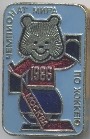 хокей,чемп-т Світу ЧС-1986 Москва талісман1 алюм./ice hockey World ch.ship badge