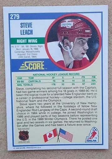 карточка хоккей НХЛ Стив Лич Вашингтон Кэпиталз № 279 выпуск 1990-91 Score Hockey
