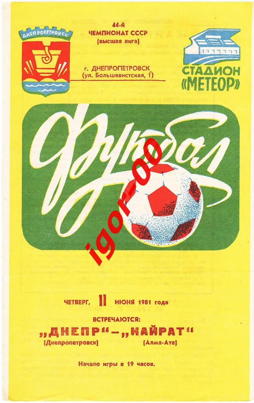 Днепр Днепропетровск - Кайрат Алма-Ата 1981