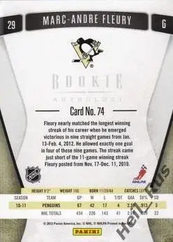 Хоккей. Карточка Fleury/Марк-Андре Флери (Pittsburgh Penguins/Питтсбург) НХЛ/NHL