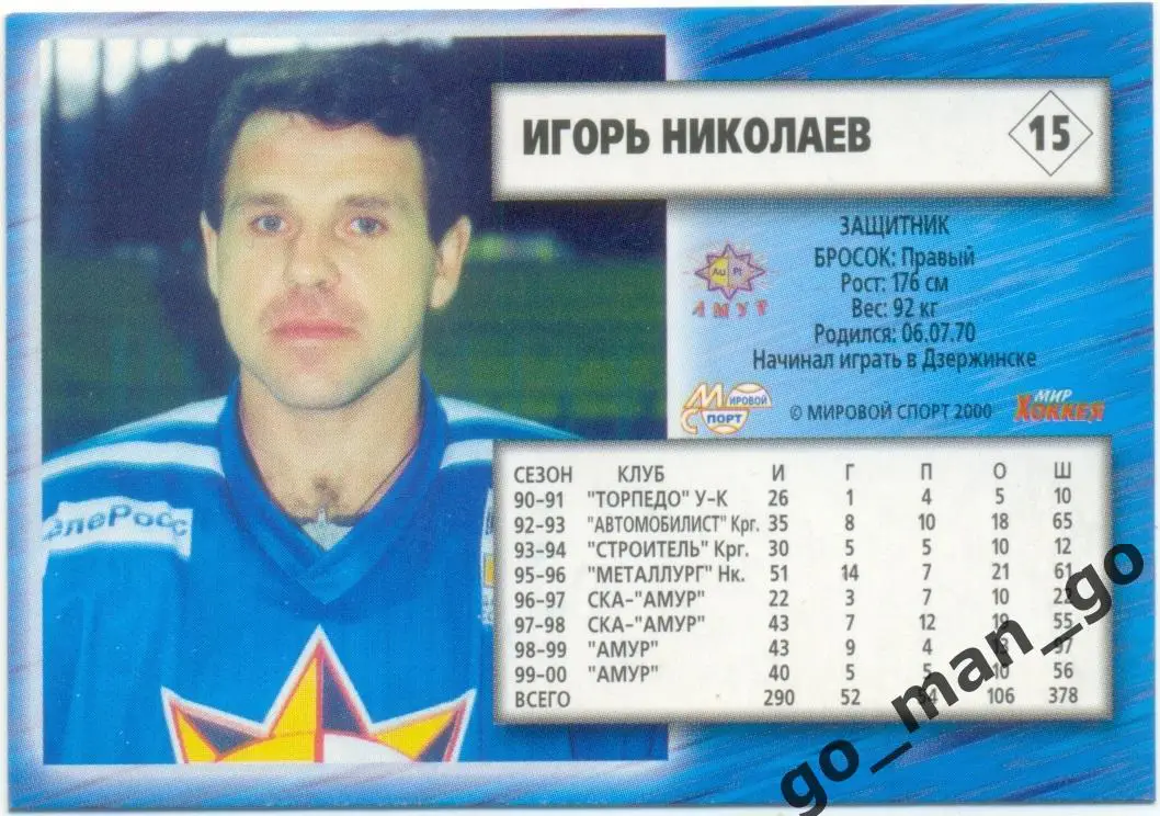 Игорь Николаев (Амур Хабаровск). Мировой спорт Российский хоккей 2000-2001, № 15Игорь Николаев (Амур Хабаровск). Мировой спорт Российский хоккей 2000-2001, № 15 1