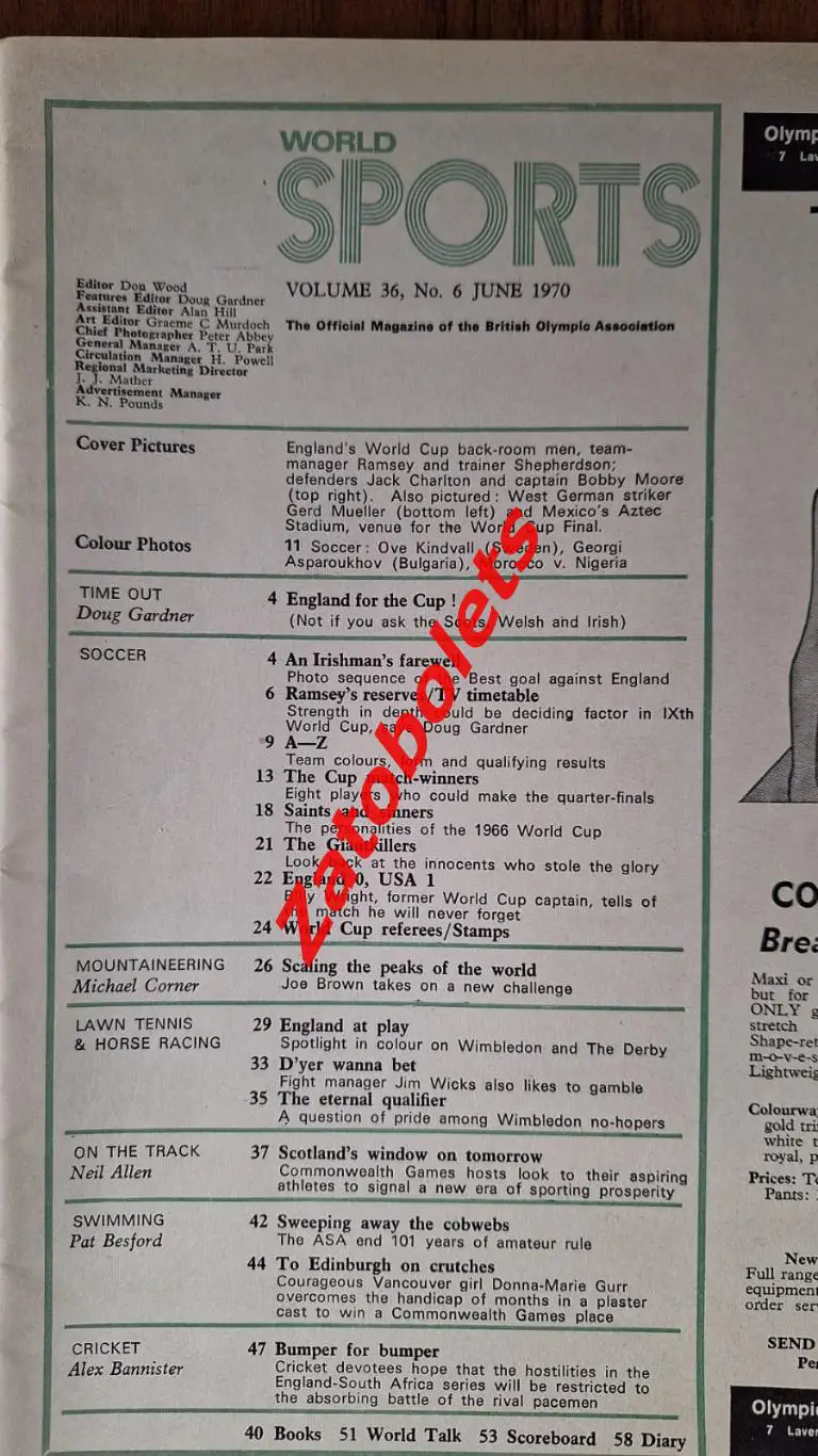 World sports Июнь 1970 Чемпионат Мира ТВ-гид