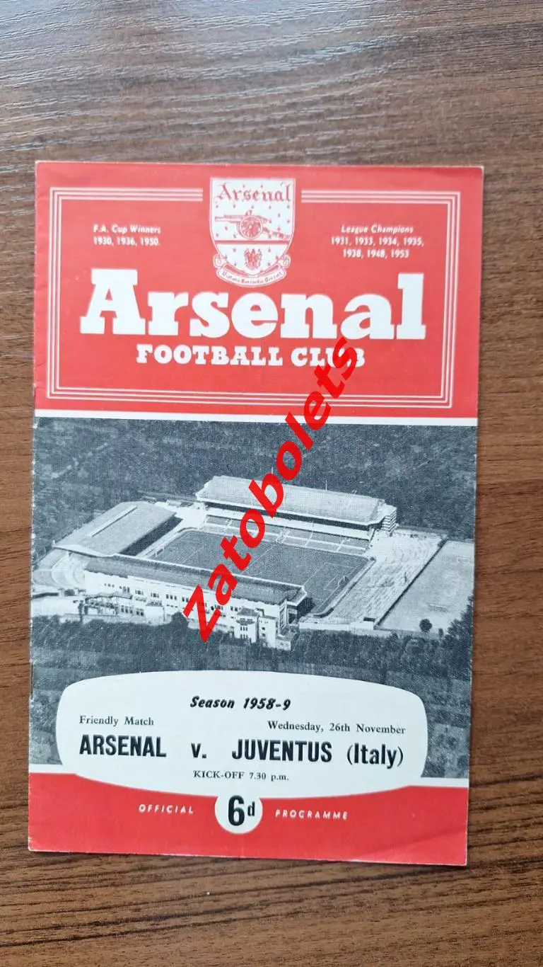 Арсенал Лондон Англия - Ювентус Италия 1958 Товарищеский матч