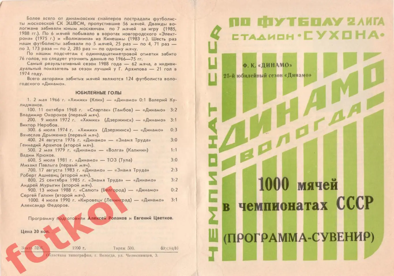 ДИНАМО Вологда 1990 1000 мячей в Чемпионатах СССР