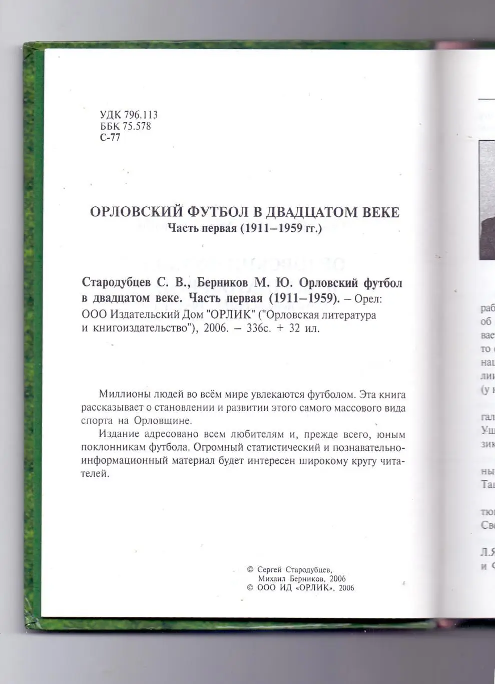 Стародубцев, Берников: Орловский футбол в двадцатом веке часть первая 1911-1959Стародубцев, Берников: Орловский футбол в двадцатом веке часть первая 1911-1959 1